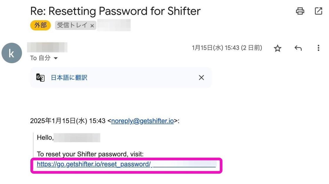 Shifterのログイン画面で、「パスワードを忘れた場合」をクリックしてアクセスすることもできます。