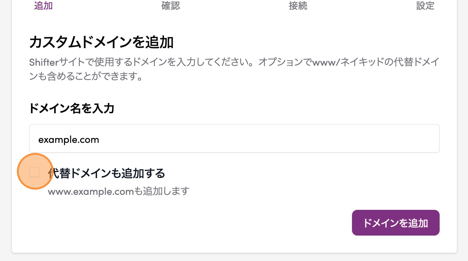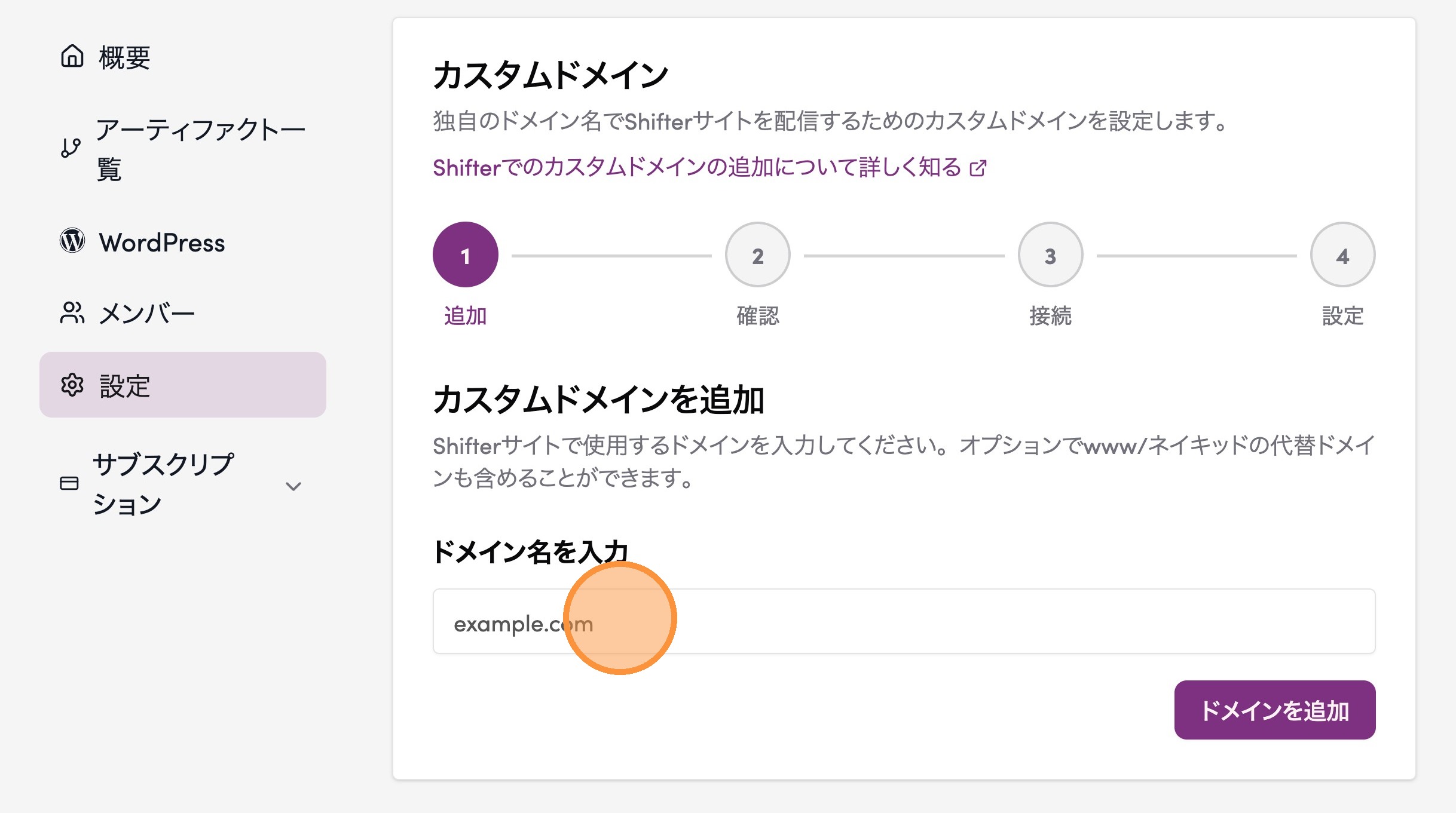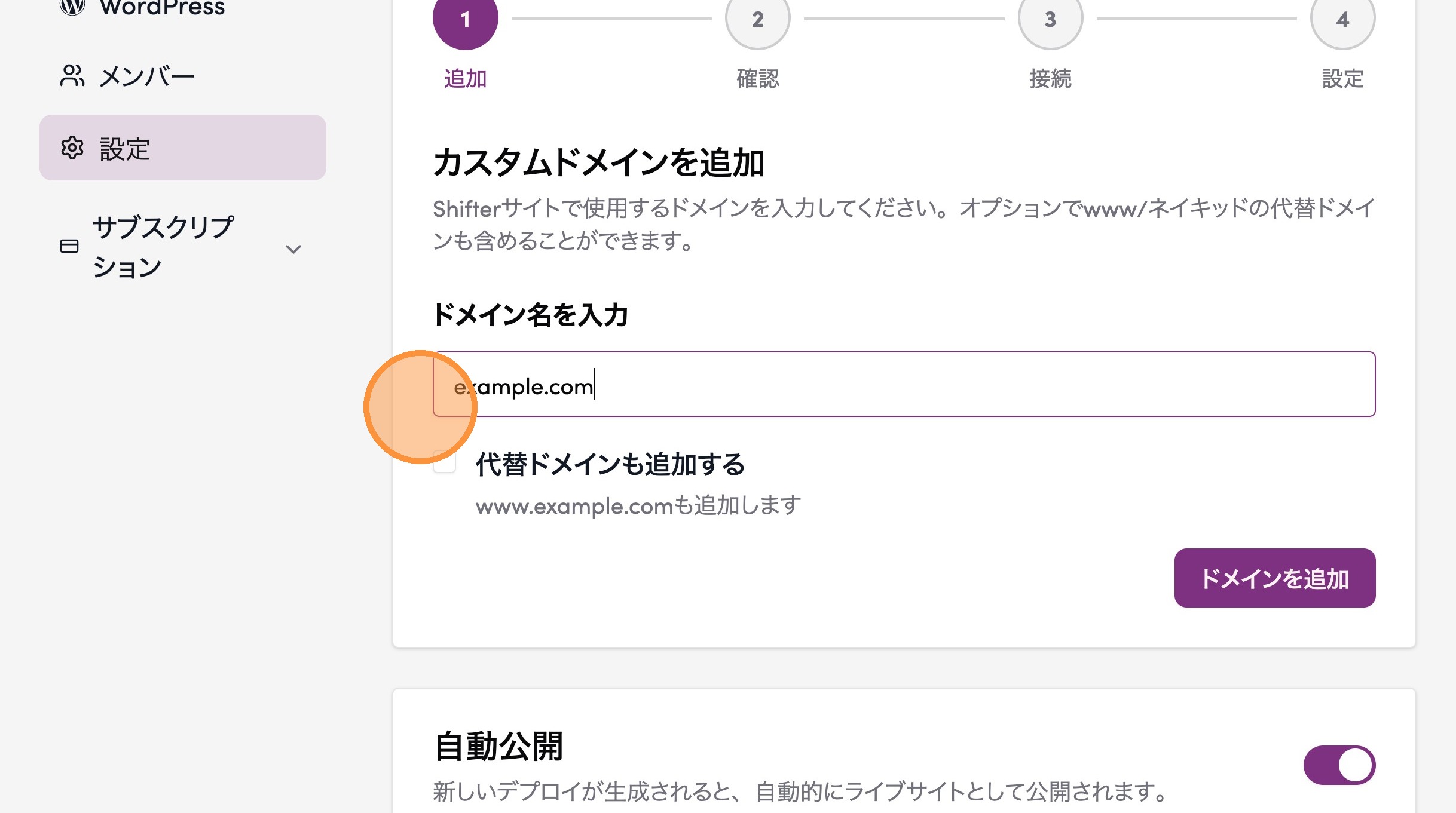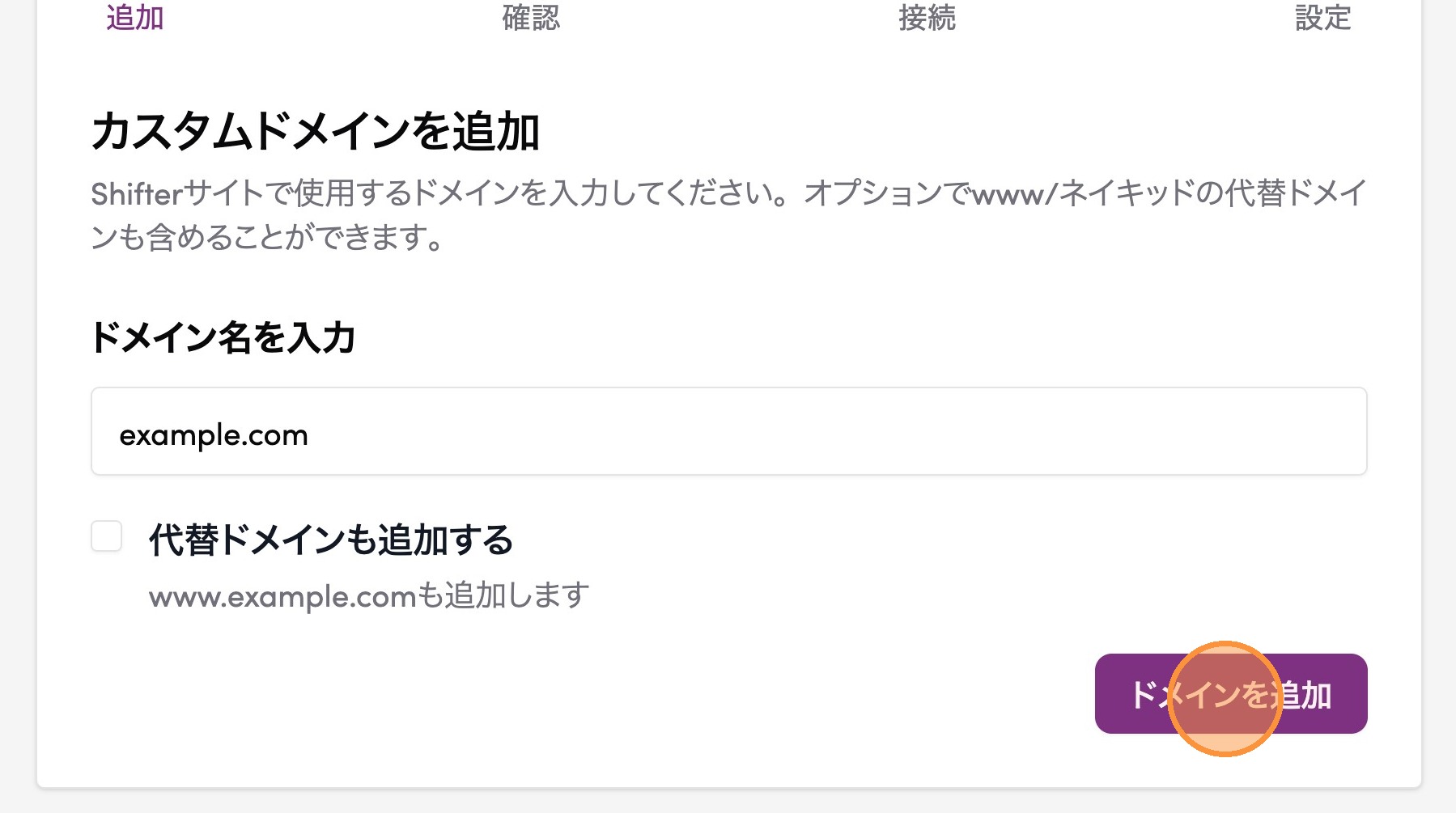4. 設定するドメインを入力する