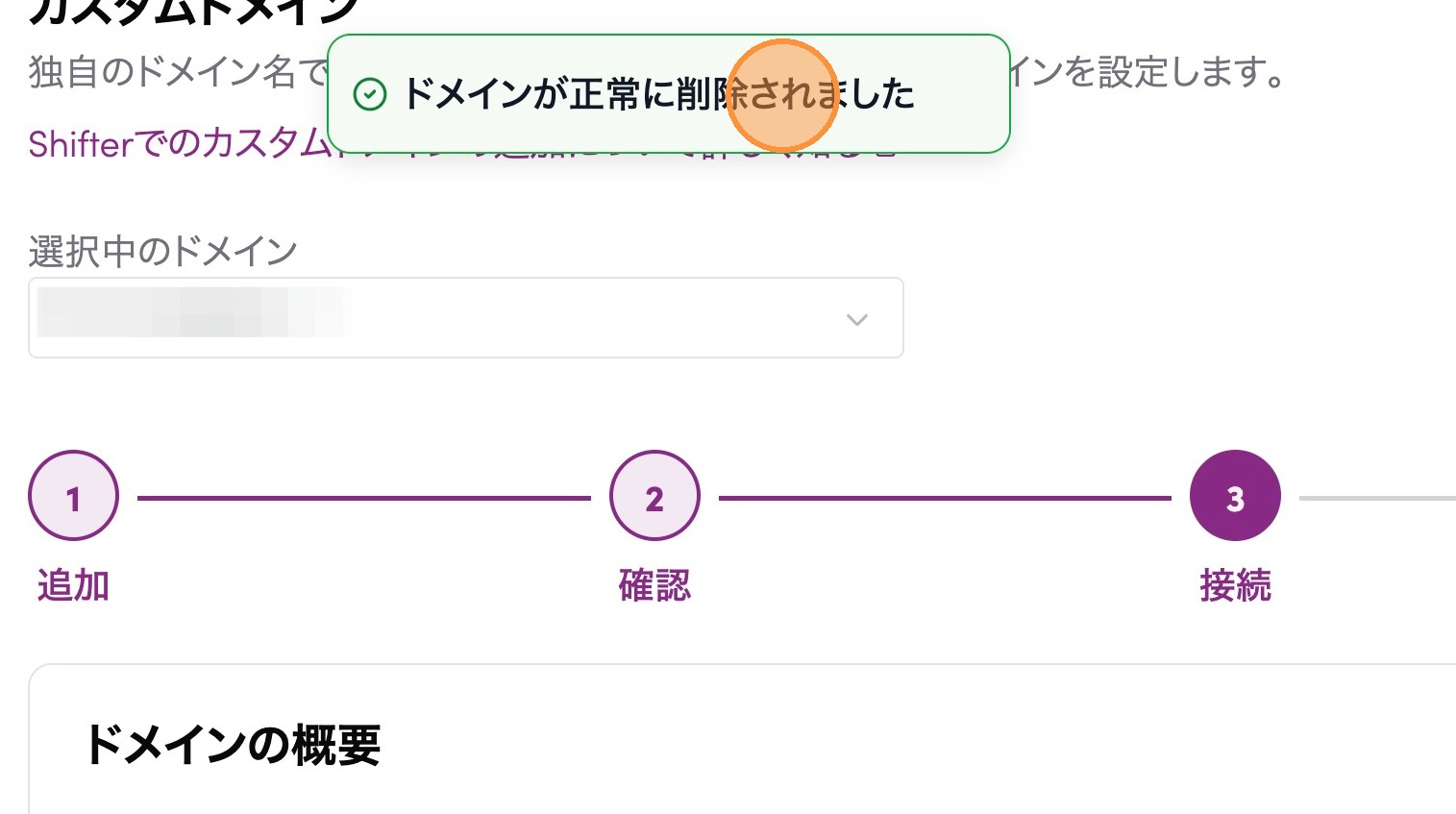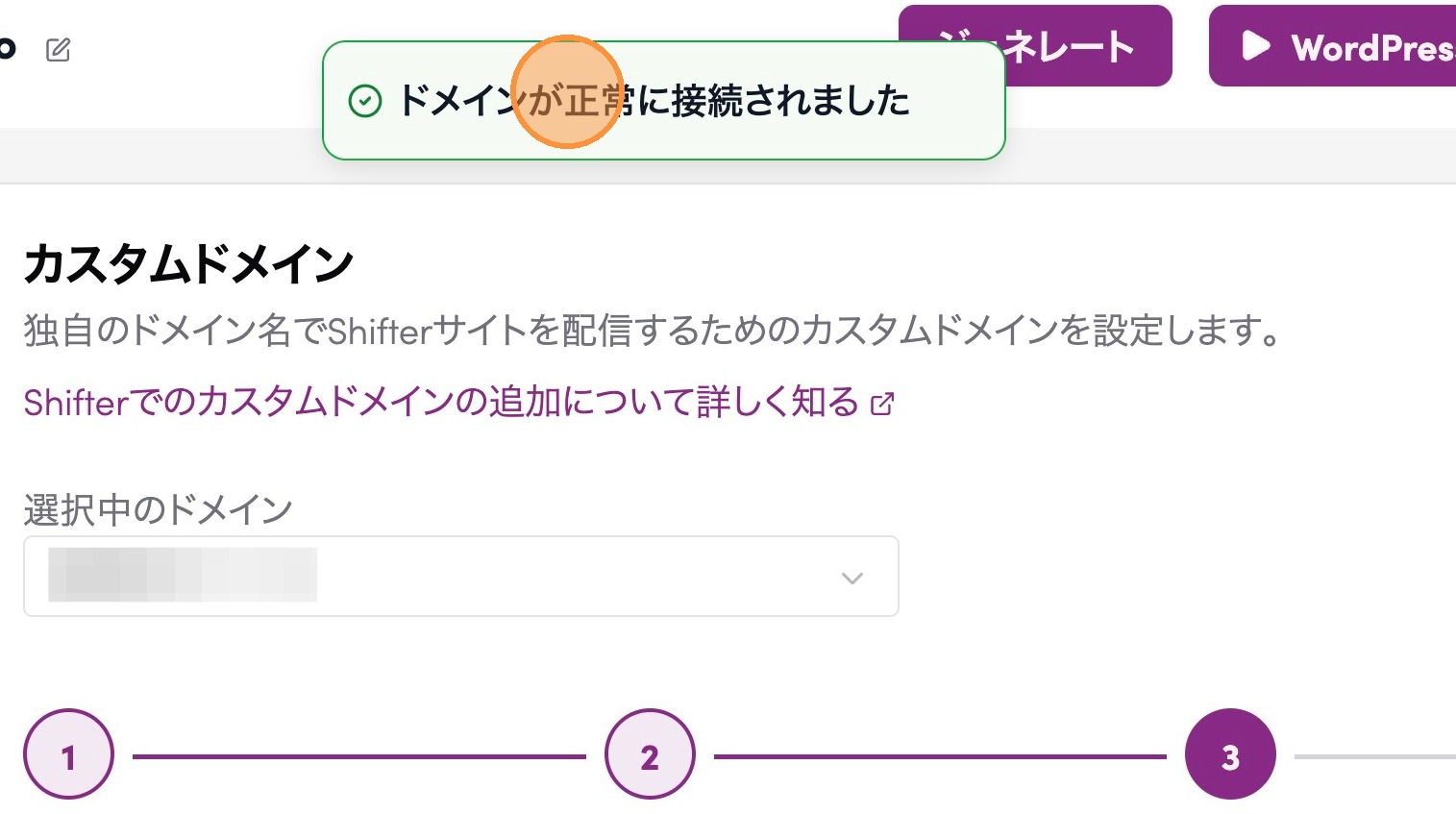 3. “ドメインが正常に接続されました”のメッセージを確認する