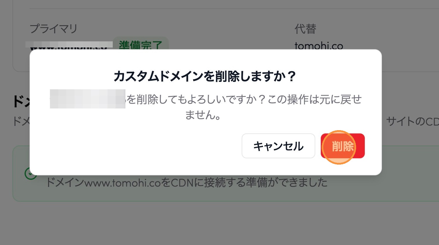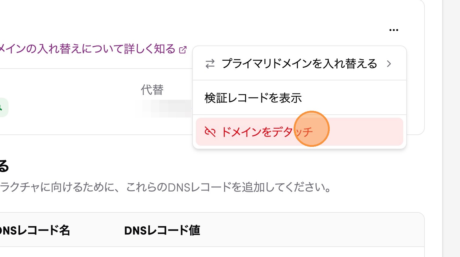 ドメインの削除は、ドメインのデタッチ操作の完了後に行えます