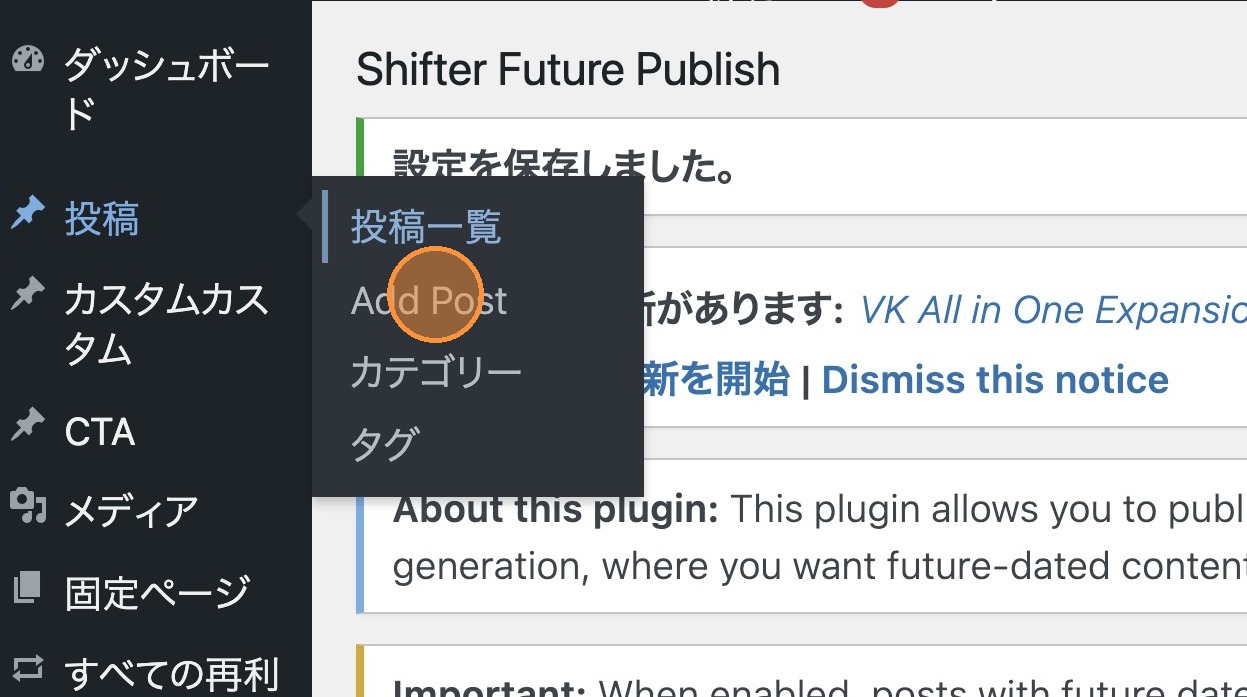 6. 投稿→ 新規投稿へ進み、新たな投稿を作成します