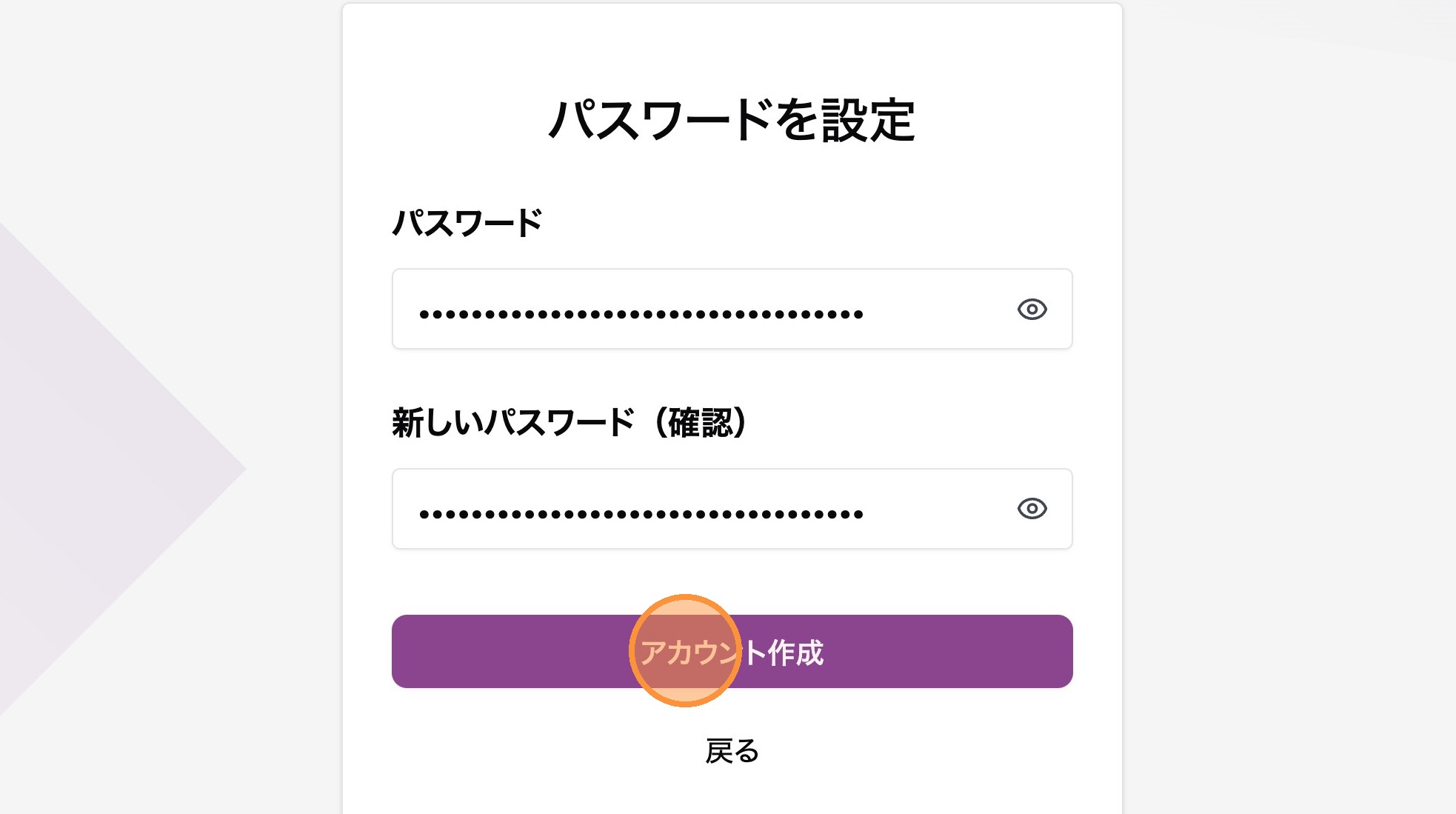10. ダッシュボードにログインし、”アカウントを作成しました”の表示が出る