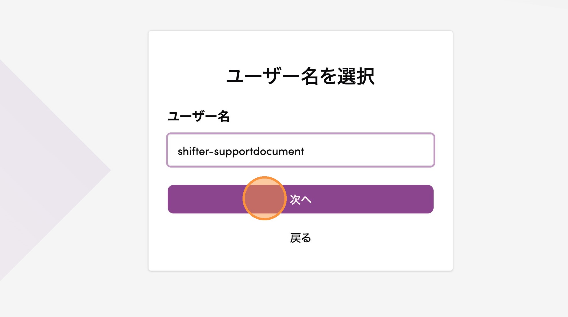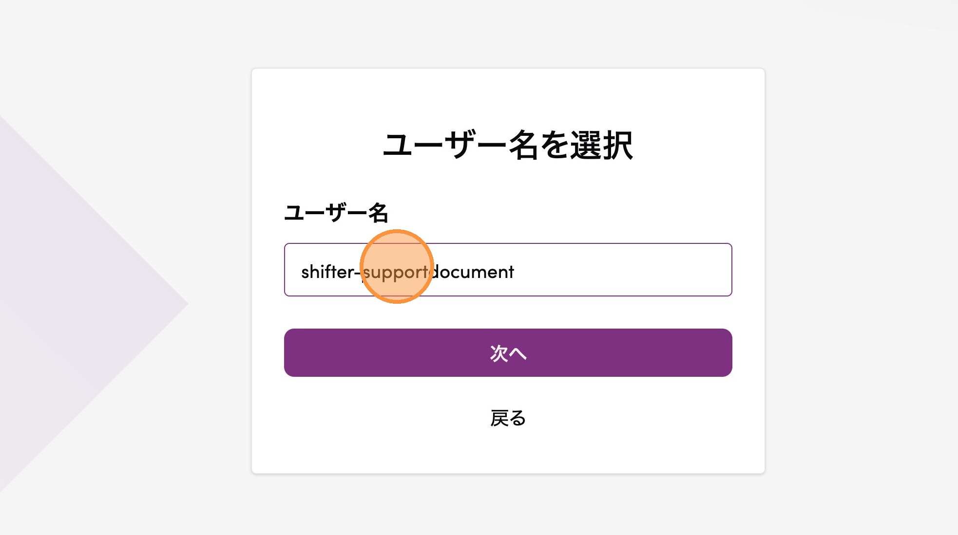 - ユーザー名 : Shifter アカウントで使用するユーザー名