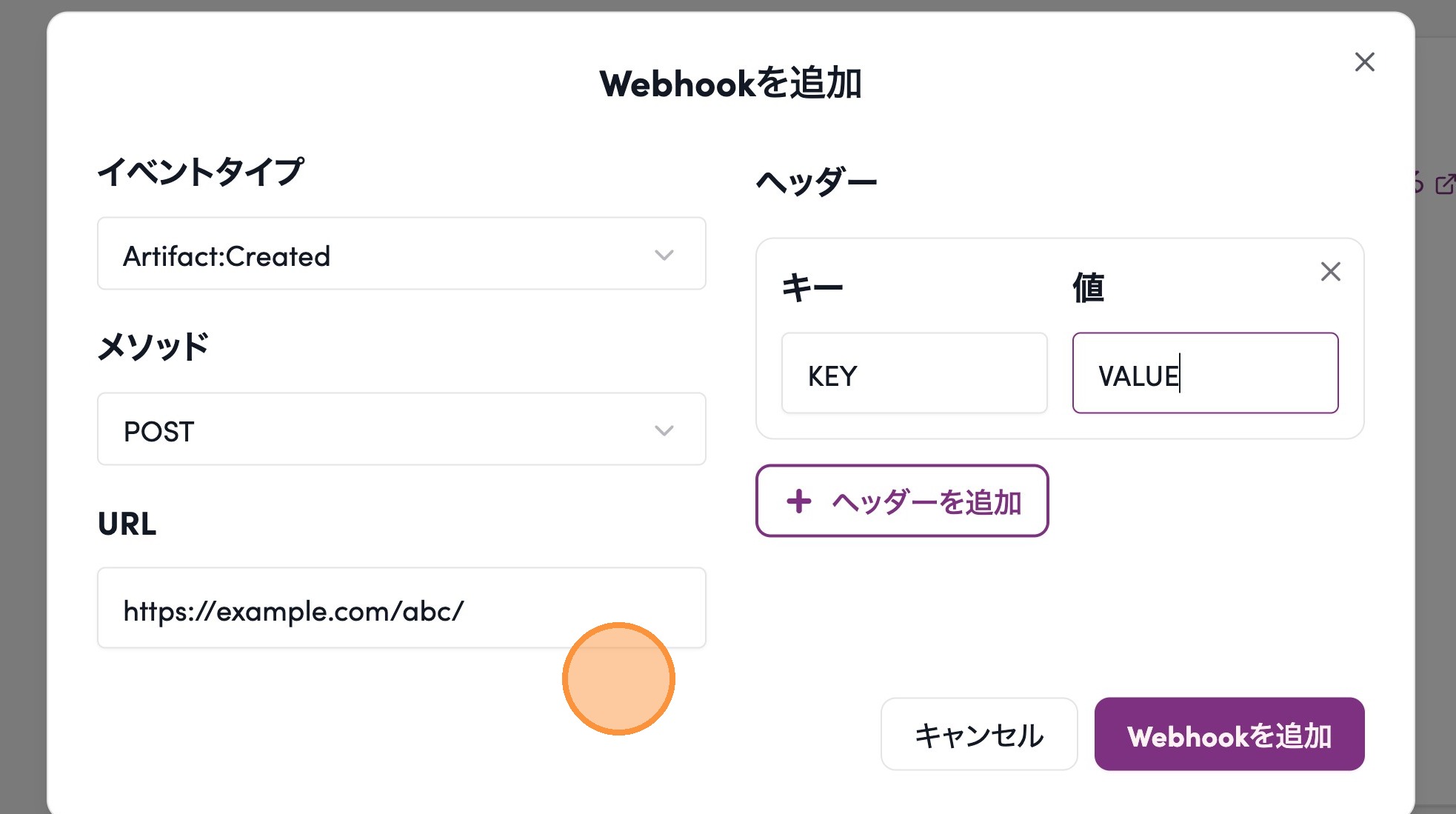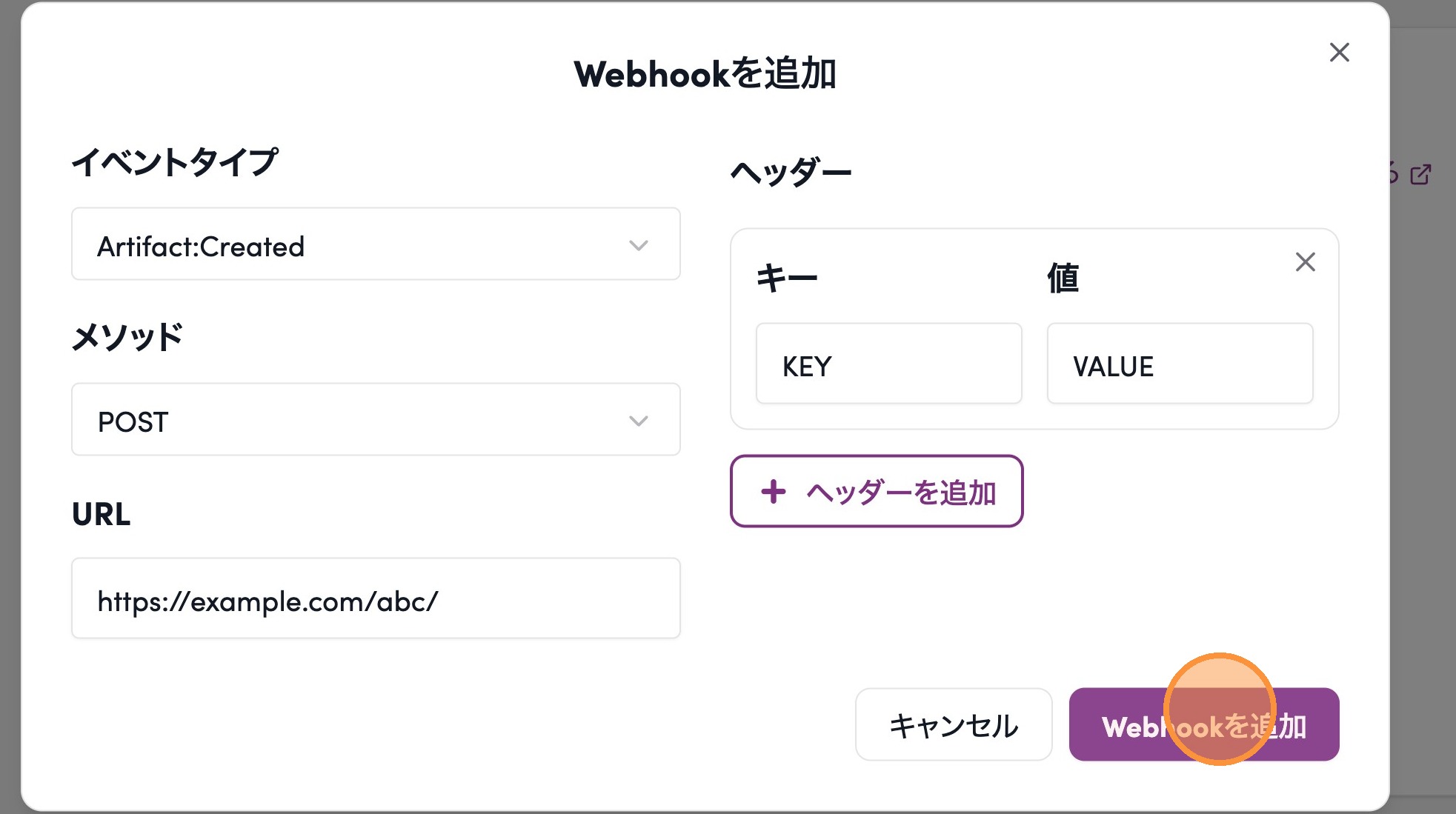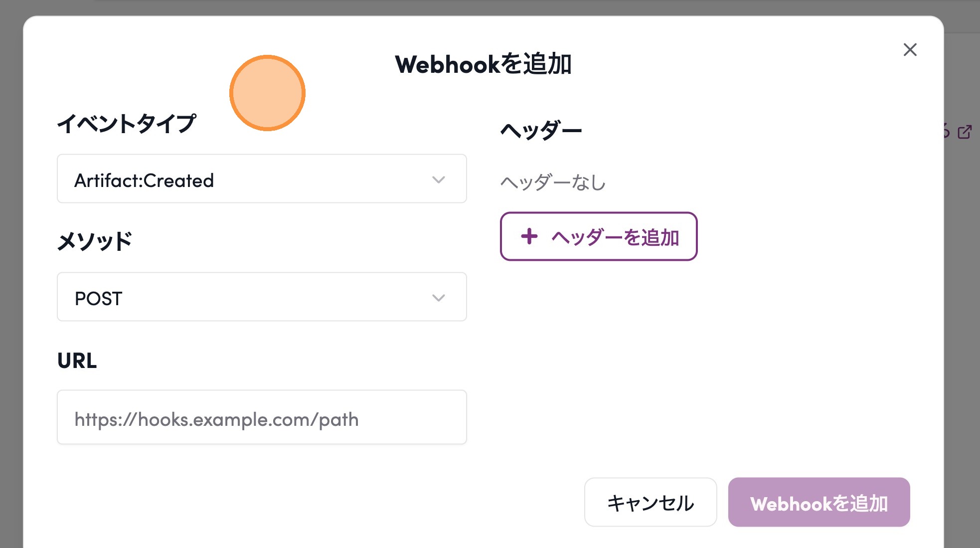 4. イベントタイプ、メソッド、ヘッダ、URLを設定する