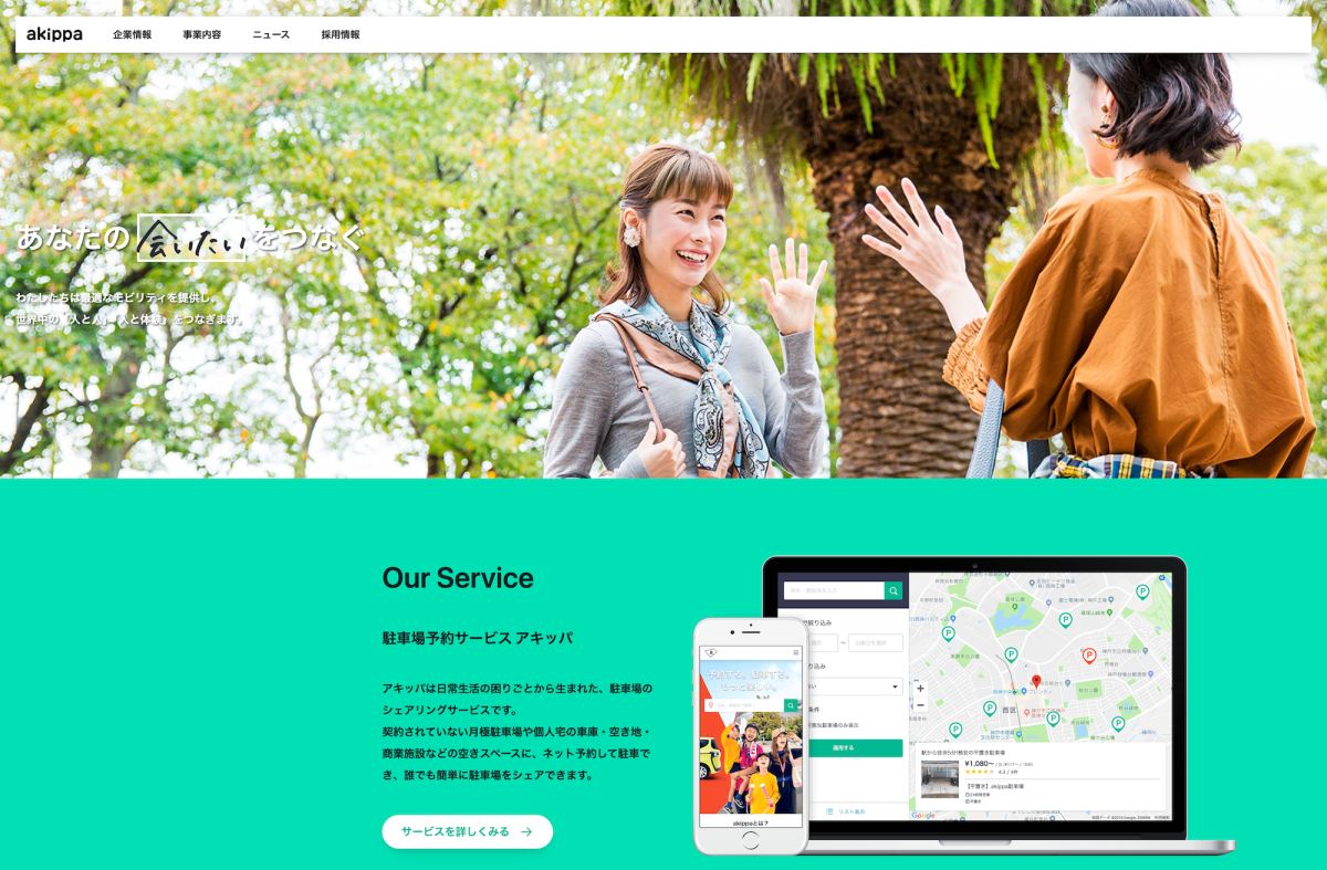 現在、コーポレートサイト(https://akippa.co.jp)を運用しています。